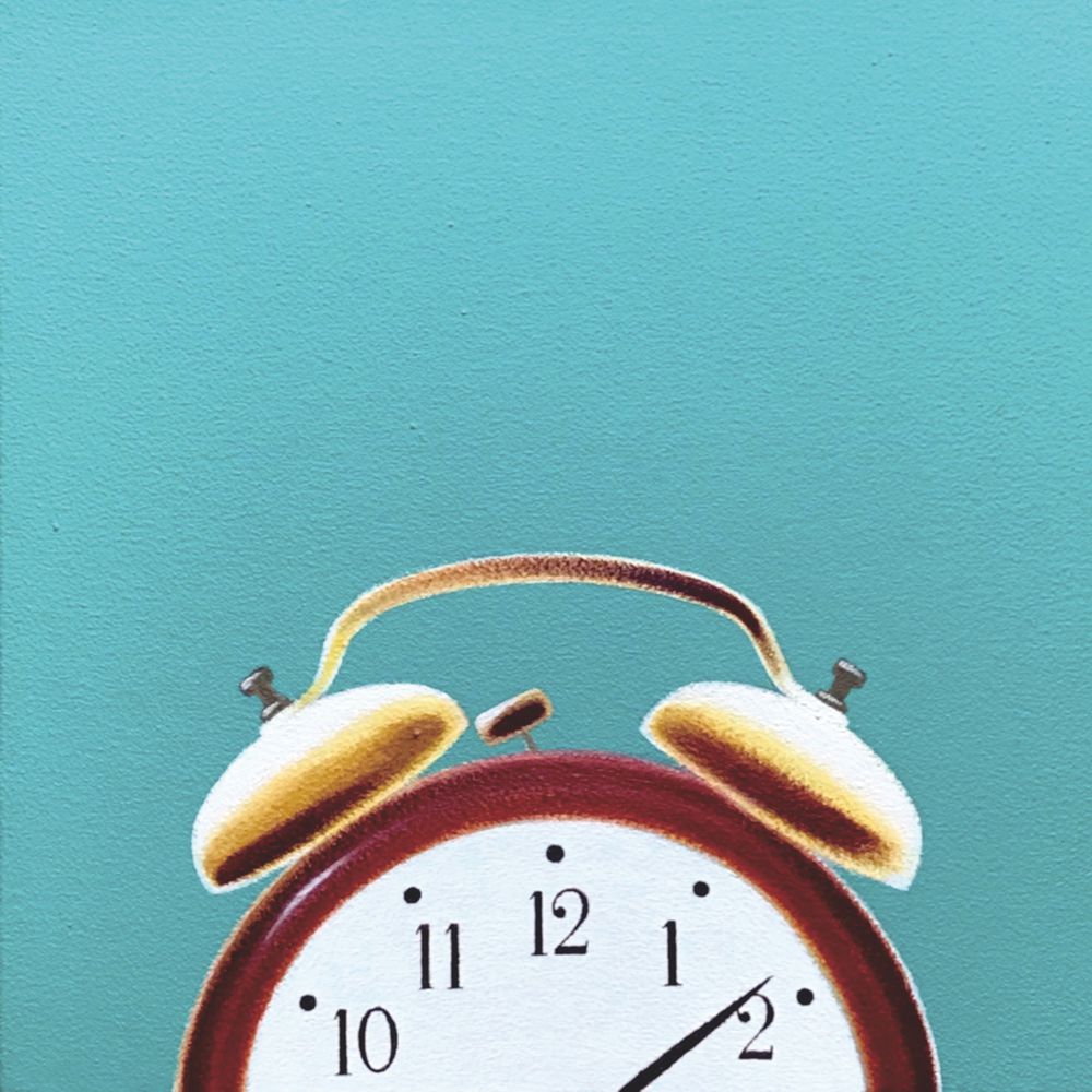 「目覚まし時計」油彩、サンドマチエール、キャンバス ”Alarm clock”